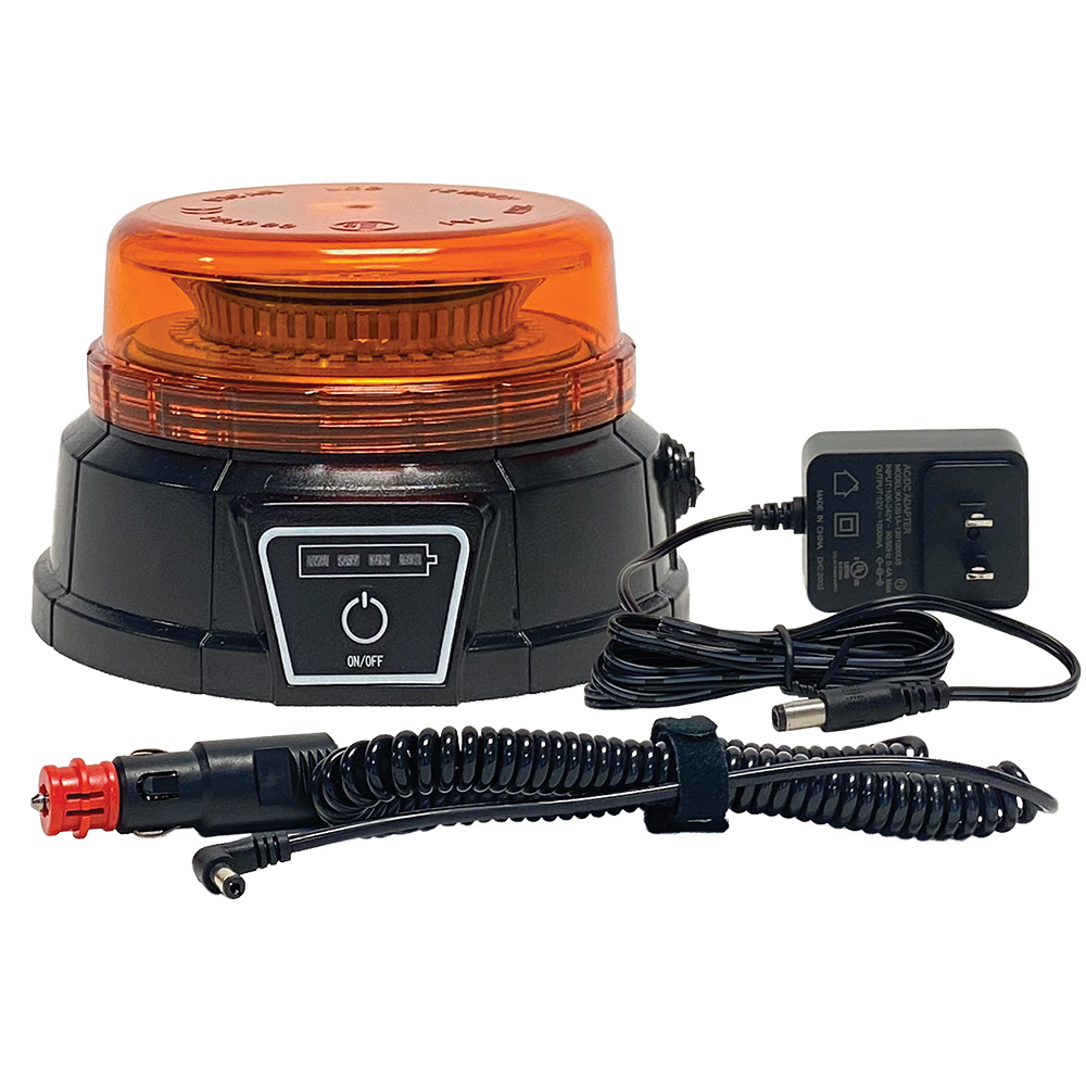Benefits: This rechargeable warning light is a convenient way to signal danger or caution to vehicles or pedestrians. Attach to metal and non-metal surfaces including cars, trucks, farm equipment, forklifts, etc. The rechargeable design means there are no batteries to replace or power cords. Recharge from the vehicle power receptacle or wall outlet (adapters not included).